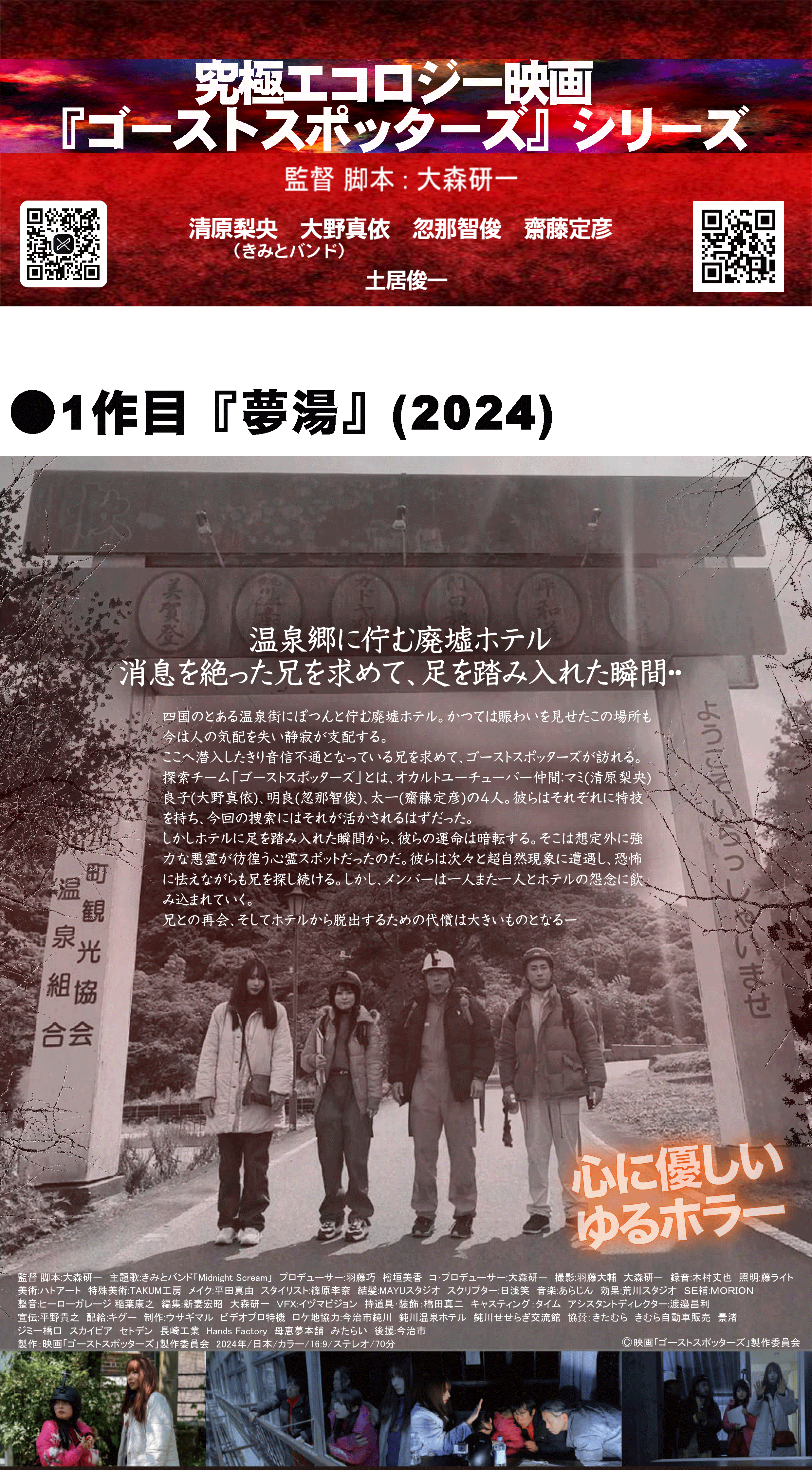 ここへ潜入したきり音信不通となっている兄を求めて、ゴーストスポッターズが訪れる。オカルト探索チームである「ゴーストスポッターズ」とは、ユーチューバー仲間:マミ(清原梨央)、良子(大野真依)、明良(忽那智俊)、太一(齋藤定彦)の4人。彼らはそれぞれに特技を持ち、今回の捜索にはそれが活かされるはずだった。